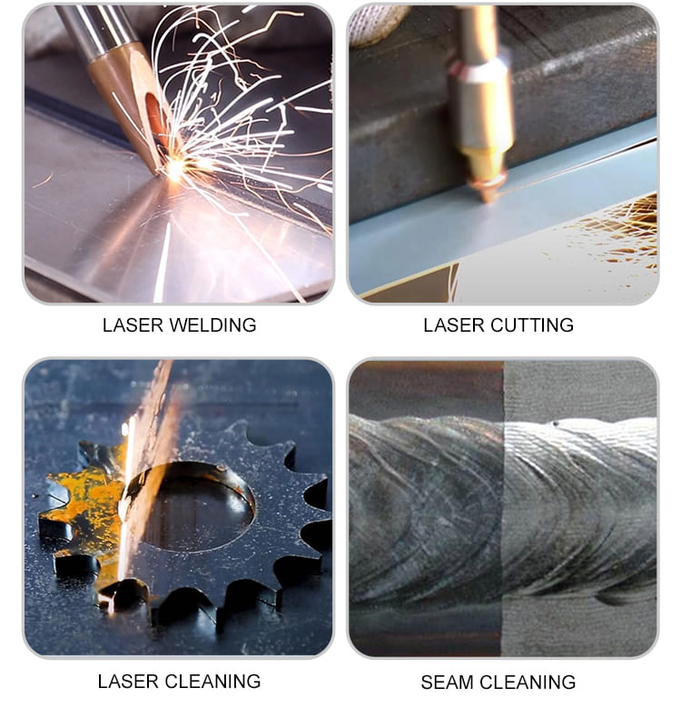 Цей лазерний зварювальний апарат HUAWEI LASER 1500 Вт, 2000 Вт, 3000 Вт 4 в 1 пропонує покупцям універсальне рішення, яке поєднує зварювання, різання, очищення та видалення іржі для ефективної обробки металу.